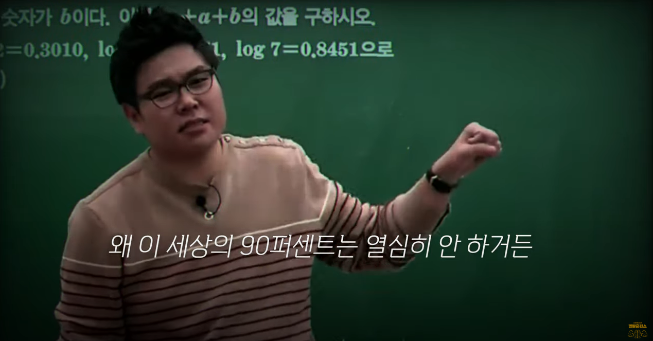이투스 정승제 하냐 안하냐의 차이이지 열심히 하냐 안하냐의 차이가 아니예요. 열심히 하면 안돼. 100미터 달리기는 오래 못해. 그냥 하면 돼. 왜! 이 세상의 90퍼센트는 열심히 안