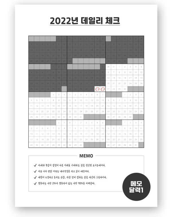 2022년 금연, 다이어트, 자기계발 등 동기부여를 심어주는 달력입니다.