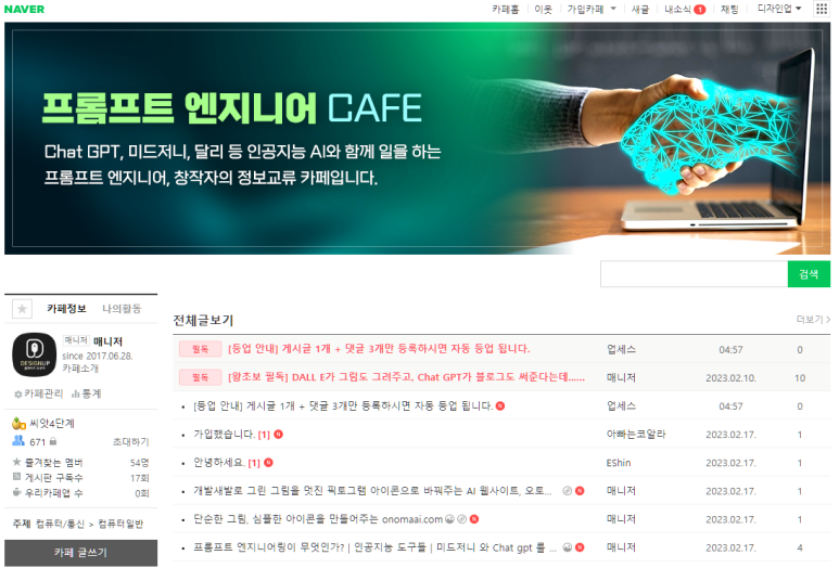 프롬프트 엔지니어 커뮤니티 카페 : 네이버 카페